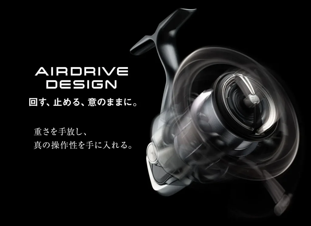 アジングにおいて軽さは感度に直結する最重要要素ですが、24ルビアスはこの軽さに加え、最新の設計思想「エアドライブデザイン」をフル搭載。