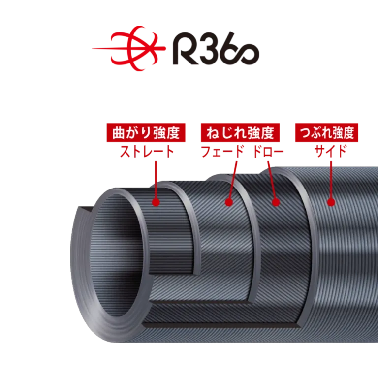 ねじれを抑えるR360構造を採用し、軽さ・感度・操作性を高水準で実現しています。