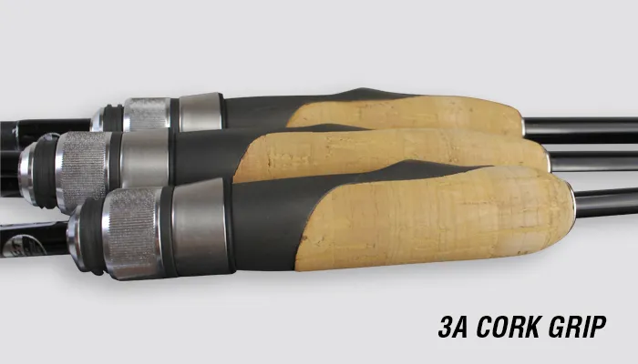 コルクは表面に微細な凹凸があるため、雨や魚の粘液で手が濡れた状態でも、比較的高いグリップ力を維持します。